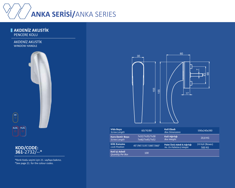 Palet Üstü Adedi & Ağırlığı (No. on Palettes & Weight) 24 Koli (Boxes) 500 KG