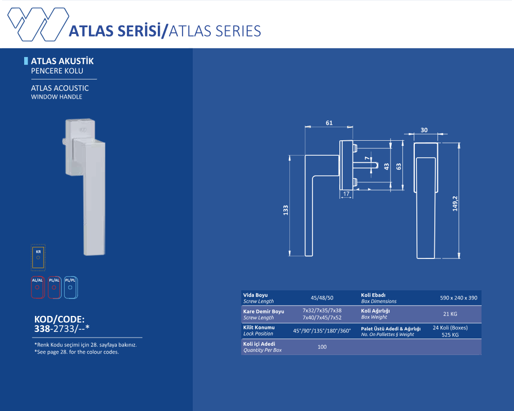 Palet Üstü Adedi & Ağırlığı (No. on Palettes & Weight) 24 Koli (Boxes) 525 KG