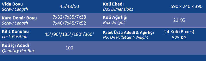 Kare Demir Boyu (Screw Length) 7x32 / 7x35 / 7x38 / 7x40 / 7x45 / 7x52