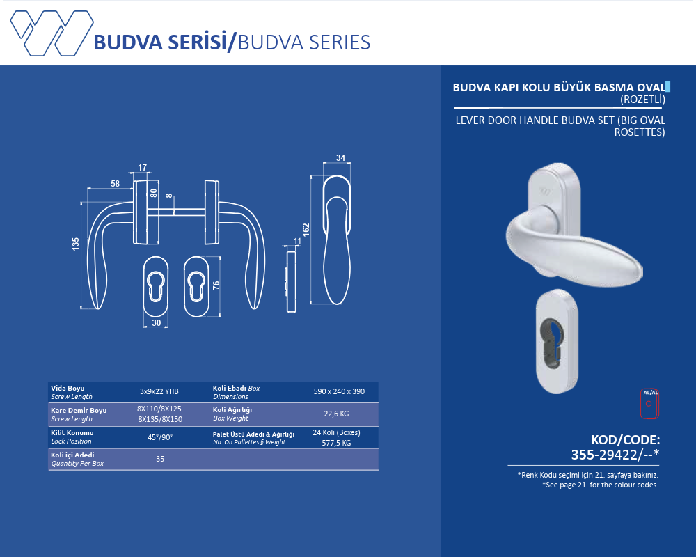 Palet Üstü Adedi & Ağırlığı (No. on Palettes & Weight) 24 Koli (Boxes) 577,5 KG