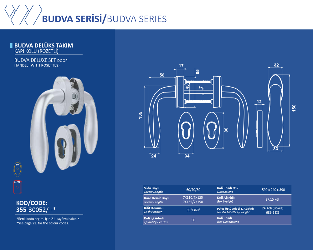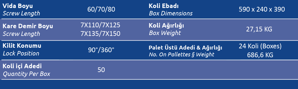 Palet Üstü Adedi & Ağırlığı (No. on Palettes & Weight) 24 Koli (Boxes) 686,6 KG