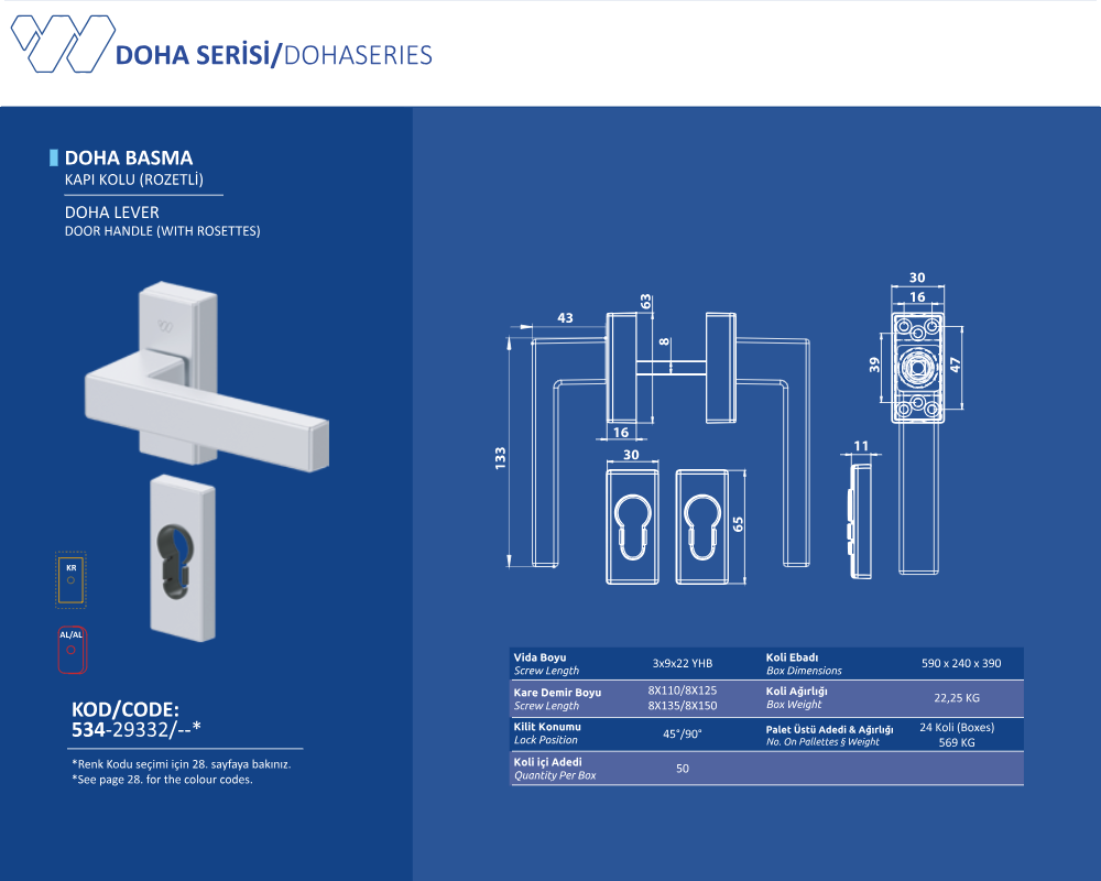 Palet Üstü Adedi & Ağırlığı (No. on Palettes & Weight) 24 Koli (Boxes) 569 KG