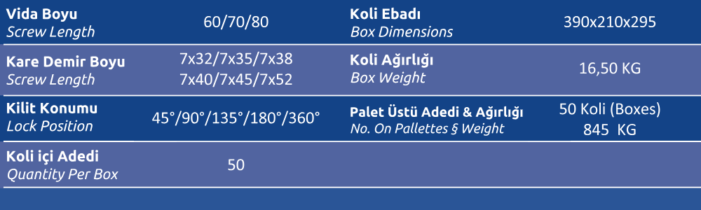 Kilit Konumu (Lock Position) 45° / 90° / 135° / 180°/ 360°