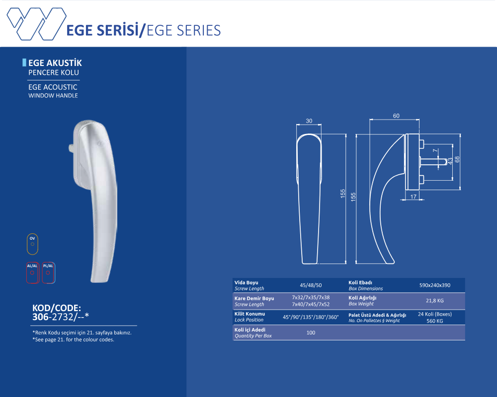 Palet Üstü Adedi & Ağırlığı (No. on Palettes & Weight) 24 Koli (Boxes) 560 KG