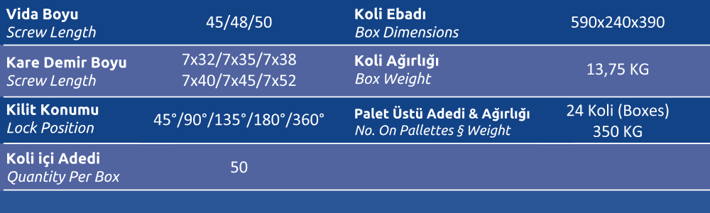 Kare Demir Boyu (Spindle Length) 7x32 / 7x35 / 7x38 / 7x40 / 7x45 / 7x52