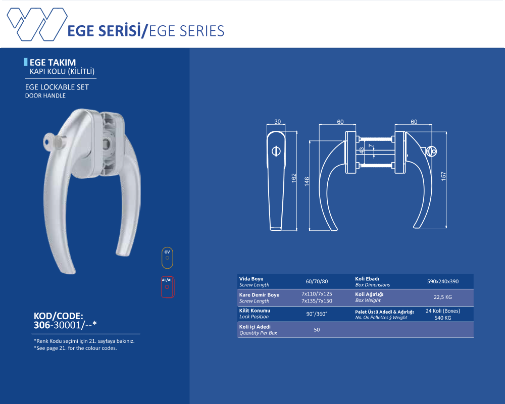 Palet Üstü Adedi & Ağırlığı (No. on Palettes & Weight) 24 Koli (Boxes) 540 KG
