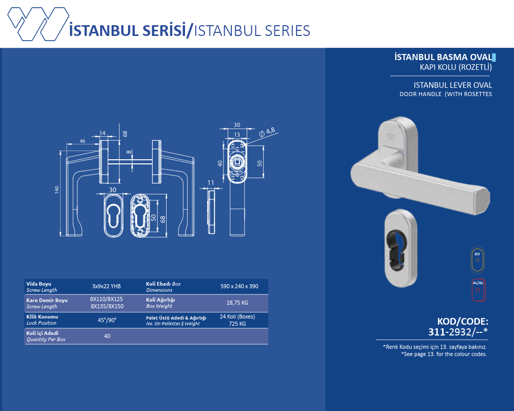 Palet Üstü Adedi & Ağırlığı (No. on Palettes & Weight) 24 Koli (Boxes) 725 KG