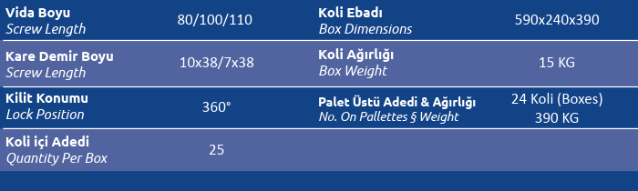 Palet Üstü Adedi & Ağırlığı (No. on Palettes & Weight) 24 Koli (Boxes) 390 KG