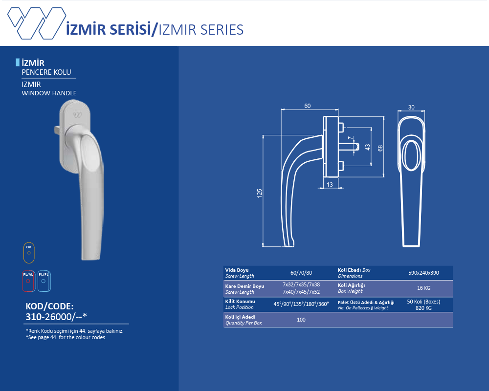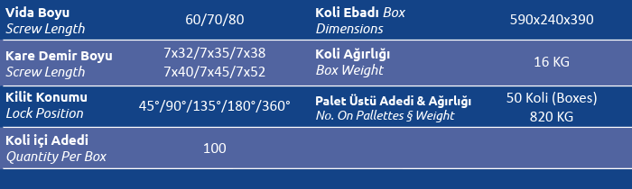 Palet Üstü Adedi & Ağırlığı (No. on Palettes & Weight) 50 Koli (Boxes) 820 KG