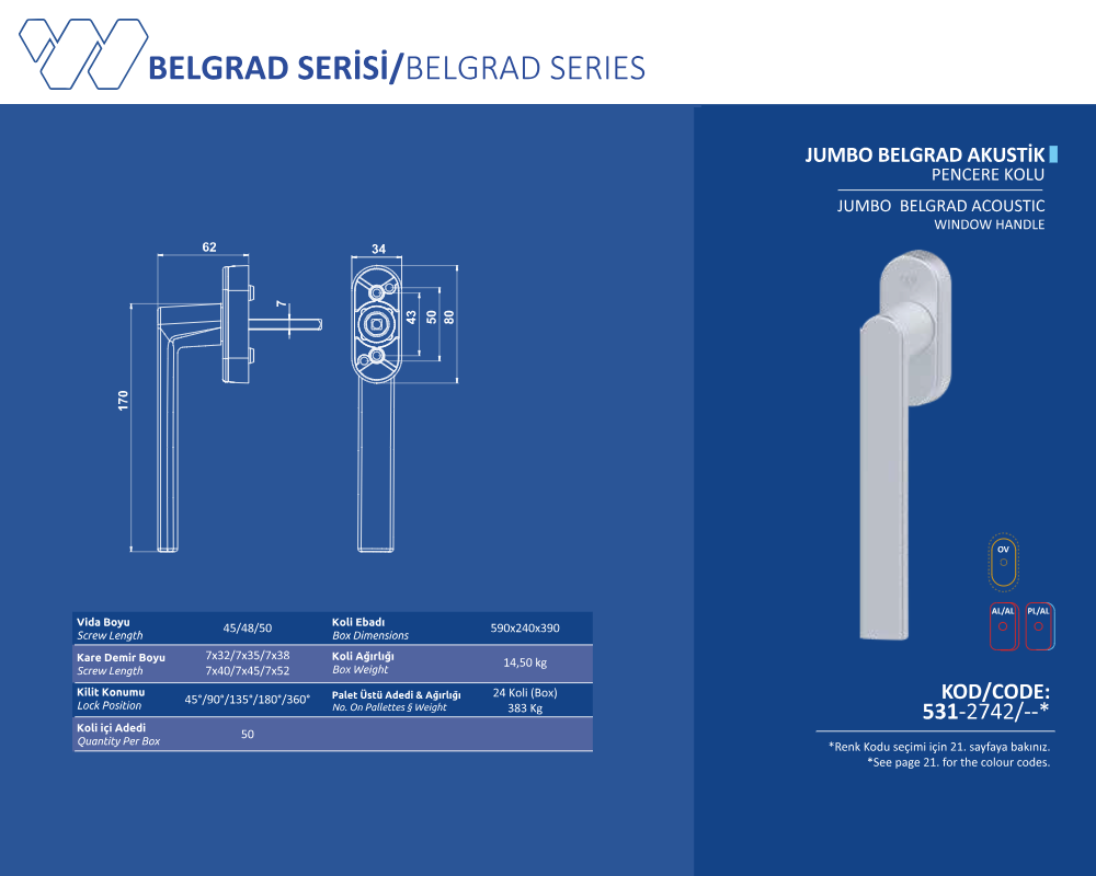 Palet Üstü Adedi & Ağırlığı (No. on Palettes & Weight) 24 Koli (Boxes) 383 KG