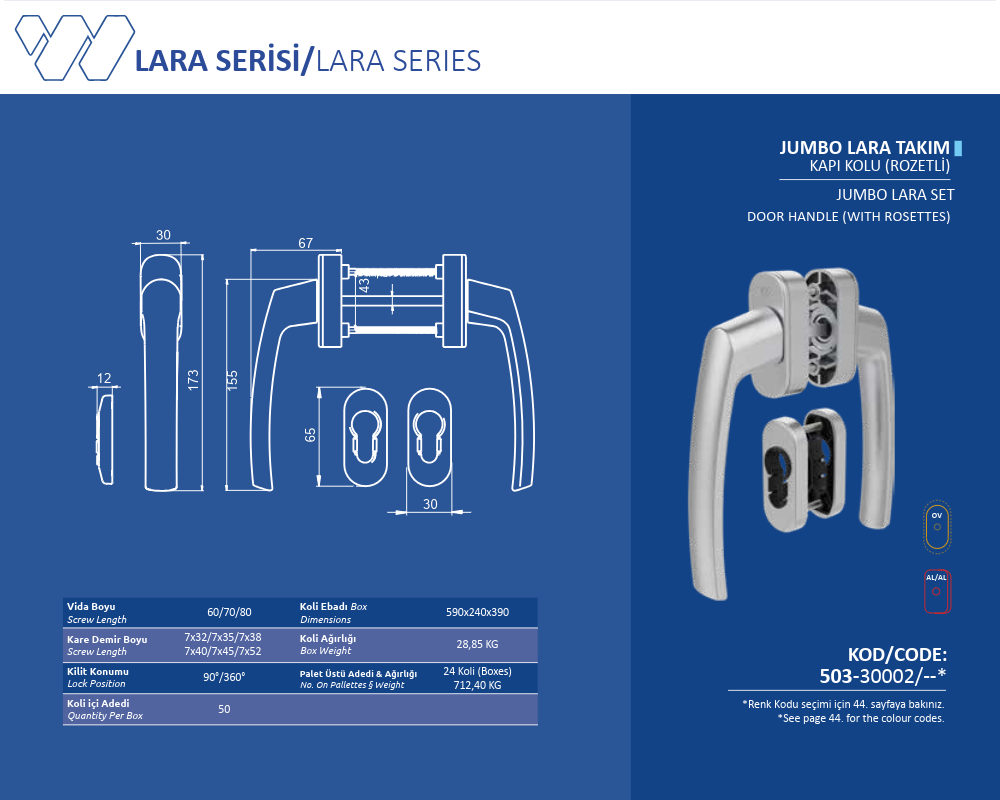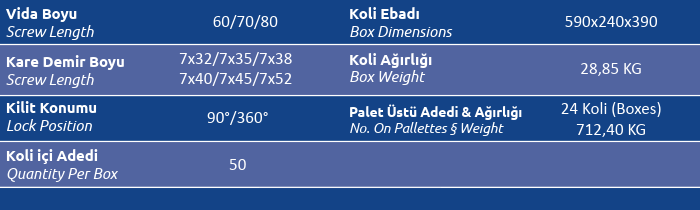 Palet Üstü Adedi & Ağırlığı (No. on Palettes & Weight) 24 Koli (Boxes) 712.4 KG