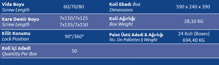Kare Demir Boyu (Screw Length) 7x110 / 7x125/7x135/7x150