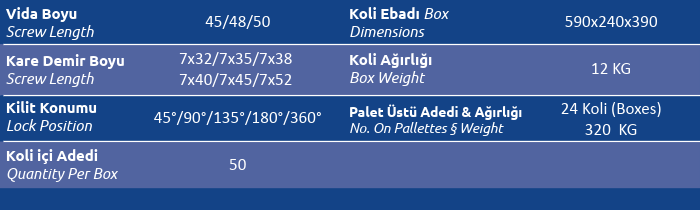Palet Üstü Adedi & Ağırlığı (No. on Palettes & Weight) 24 Koli (Boxes) 320 KG