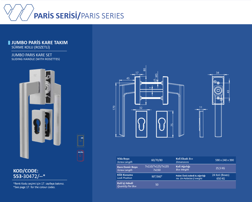Palet Üstü Adedi & Ağırlığı (No. on Palettes & Weight) 24 Koli (Boxes) 650 KG