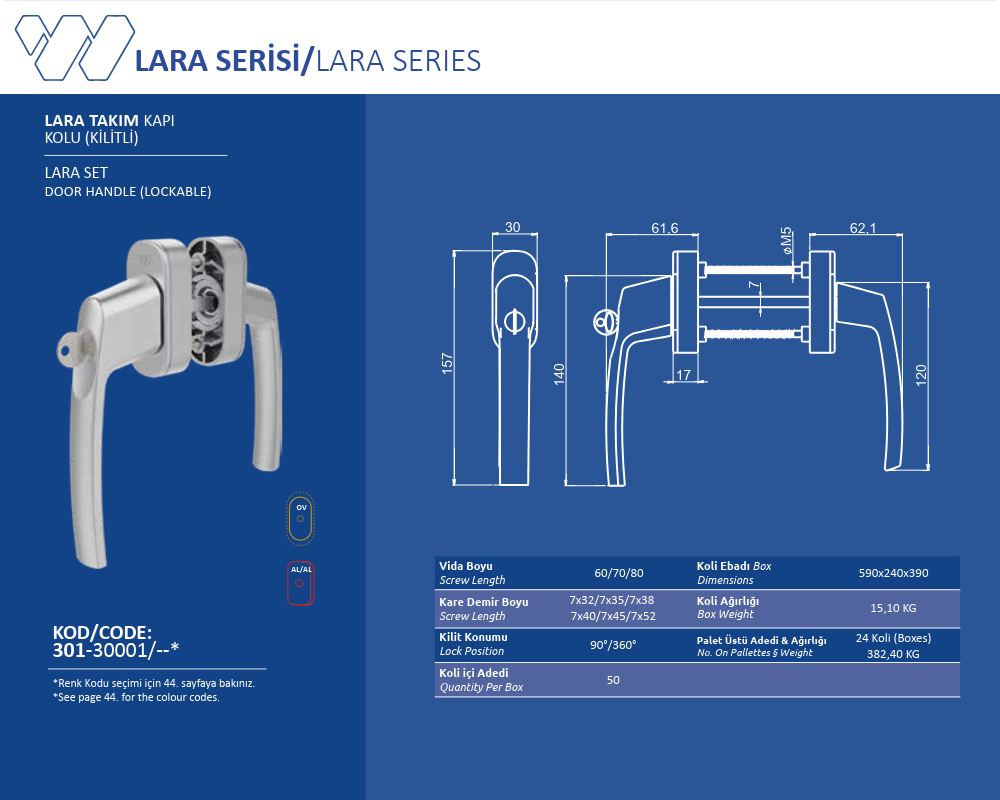 Palet Üstü Adedi & Ağırlığı (No. on Palettes & Weight) 24 Koli (Boxes) 382.4 KG