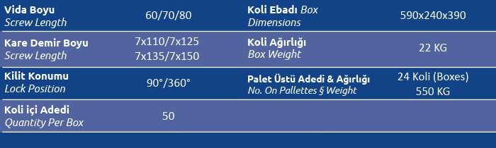 Palet Üstü Adedi & Ağırlığı (No. on Palettes & Weight) 24 Koli (Boxes) 550 KG