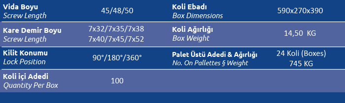 Kare Demir Boyu (Screw Length) 7x32 / 7x35 / 7x38 / 7x40 / 7x45 / 7x52