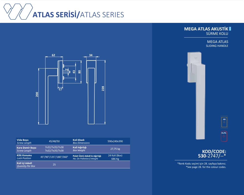 Palet Üstü Adedi & Ağırlığı (No. on Palettes & Weight) 24 Koli (Boxes) 686 KG