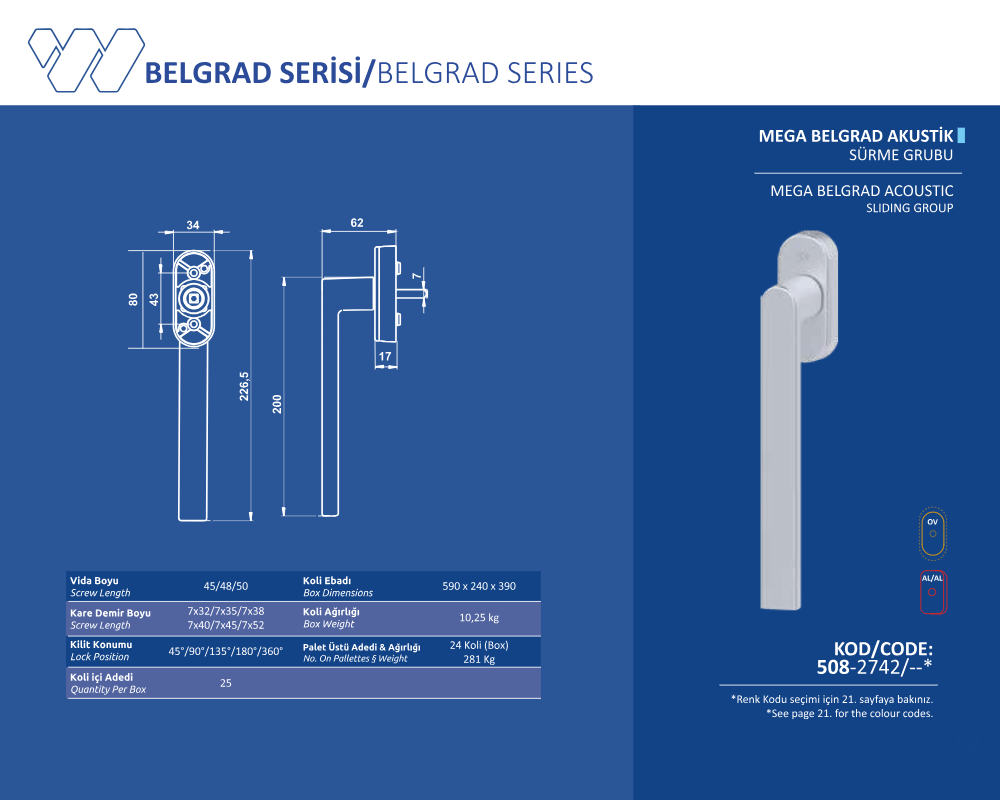 Palet Üstü Adedi & Ağırlığı (No. on Palettes & Weight) 24 Koli (Boxes) 281 KG