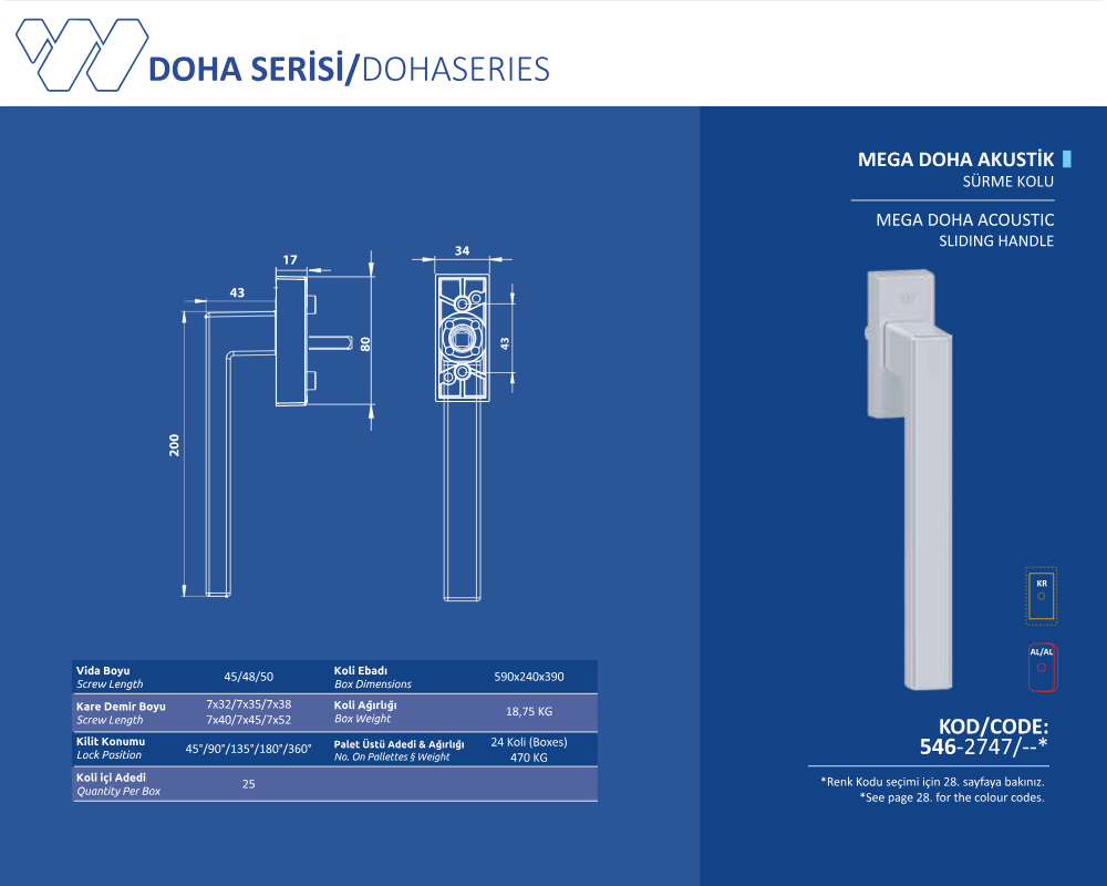 Palet Üstü Adedi & Ağırlığı (No. on Palettes & Weight) 24 Koli (Boxes) 470 KG