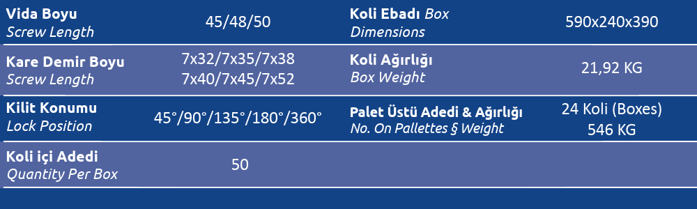 Kare Demir Boyu (Spindle Length) 7x32 / 7x35 / 7x38 / 7x40 / 7x45 / 7x52