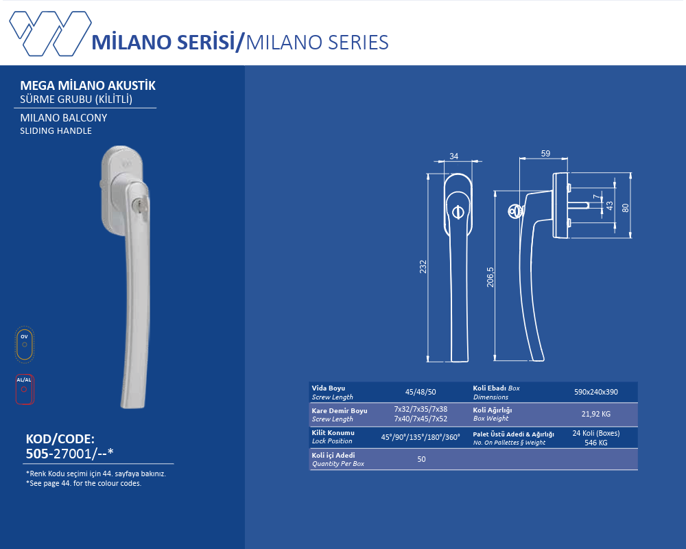 Palet Üstü Adedi & Ağırlığı (No. on Palettes & Weight) 24 Koli (Boxes) 546 KG