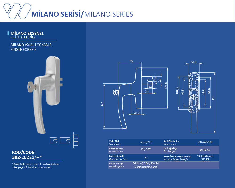 Palet Üstü Adedi & Ağırlığı (No. on Palettes & Weight) 24 Koli (Boxes) 512 KG