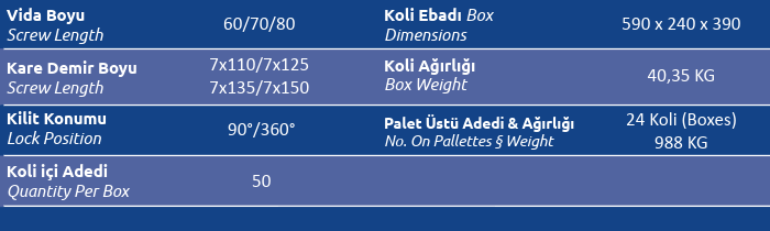 Palet Üstü Adedi & Ağırlığı (No. on Palettes & Weight) 24 Koli (Boxes) 988 KG