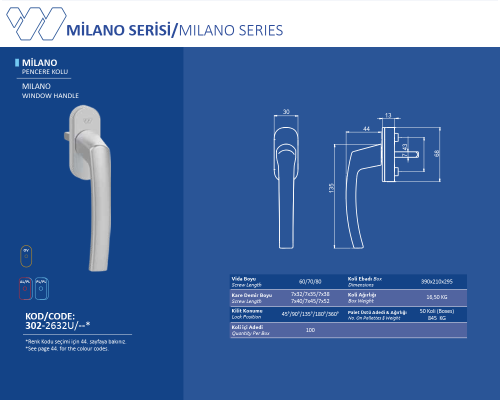 Palet Üstü Adedi & Ağırlığı (No. on Palettes & Weight) 50 Koli (Boxes) 845 KG