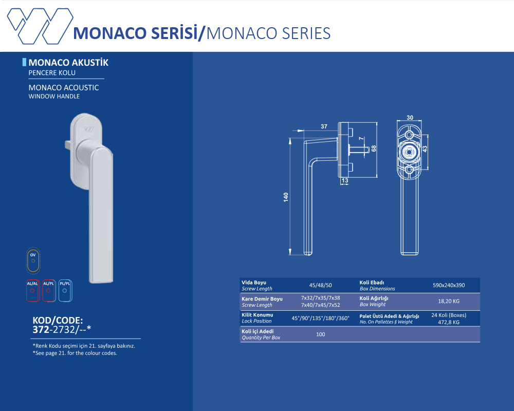 Palet Üstü Adedi & Ağırlığı (No. on Palettes & Weight) 24 Koli (Boxes) 472,8 KG