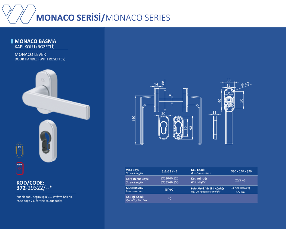 Palet Üstü Adedi & Ağırlığı (No. on Palettes & Weight) 24 Koli (Boxes) 527 KG
