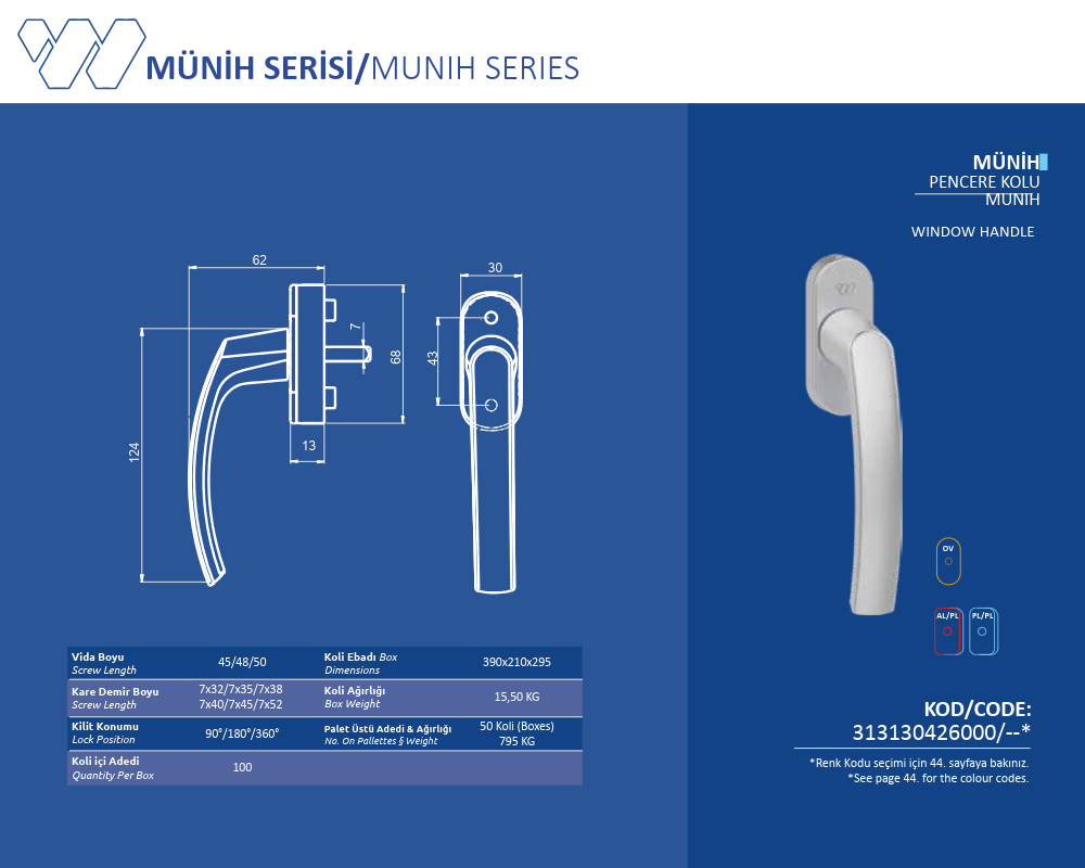 Palet Üstü Adedi & Ağırlığı (No. on Palettes & Weight) 50 Koli (Boxes) 795 KG