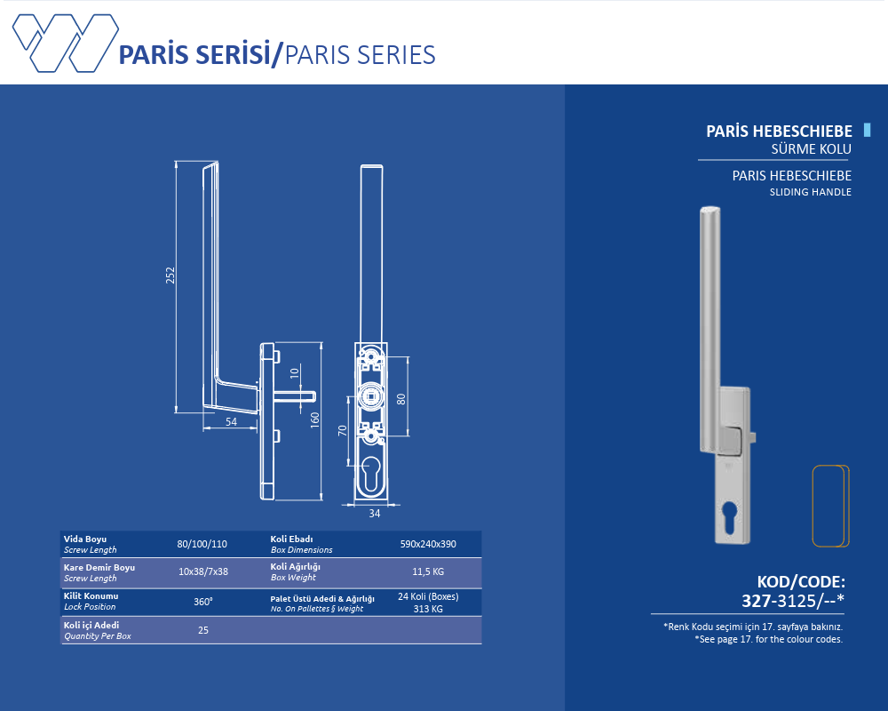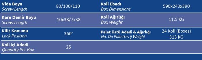 Palet Üstü Adedi & Ağırlığı (No. on Palettes & Weight) 24 Koli (Boxes) 313 KG