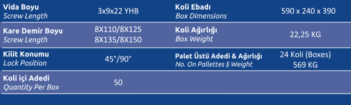 Kare Demir Boyu (Screw Length) 8x110 / 8x125/8x135/8x150