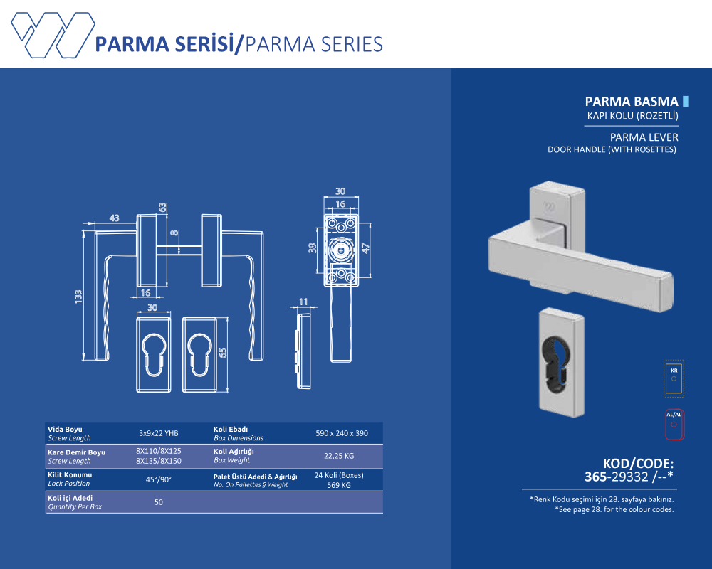 Palet Üstü Adedi & Ağırlığı (No. on Palettes & Weight) 24 Koli (Boxes) 569 KG