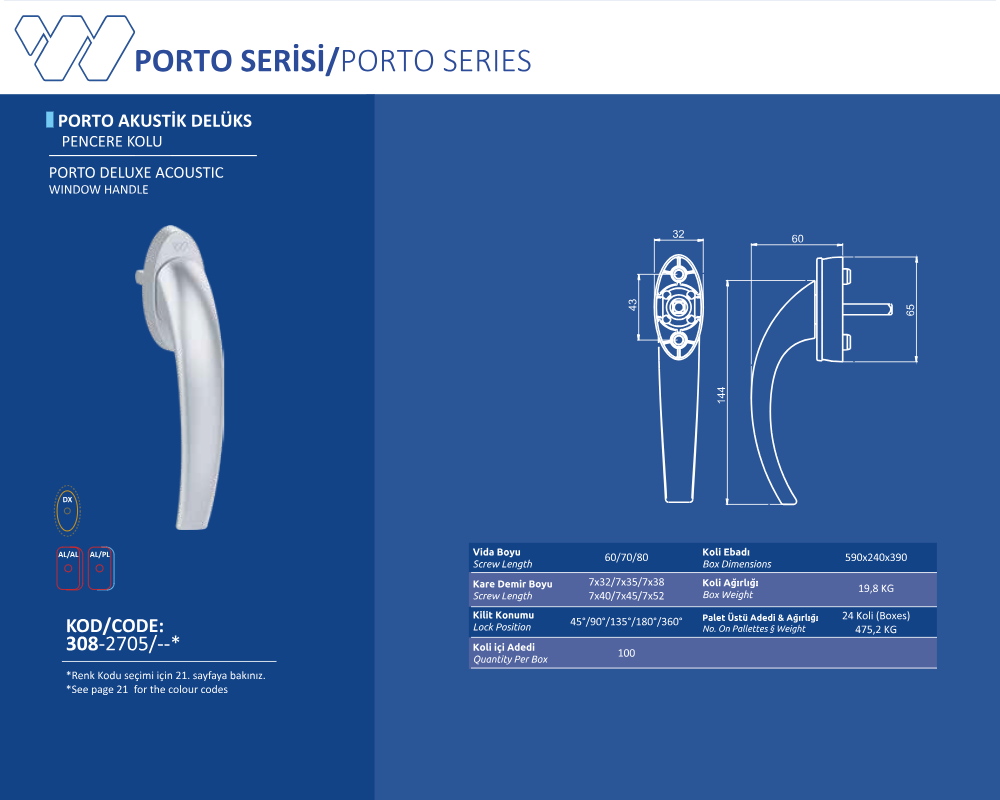 Palet Üstü Adedi & Ağırlığı (No. on Palettes & Weight) 24 Koli (Boxes) 475,2KG