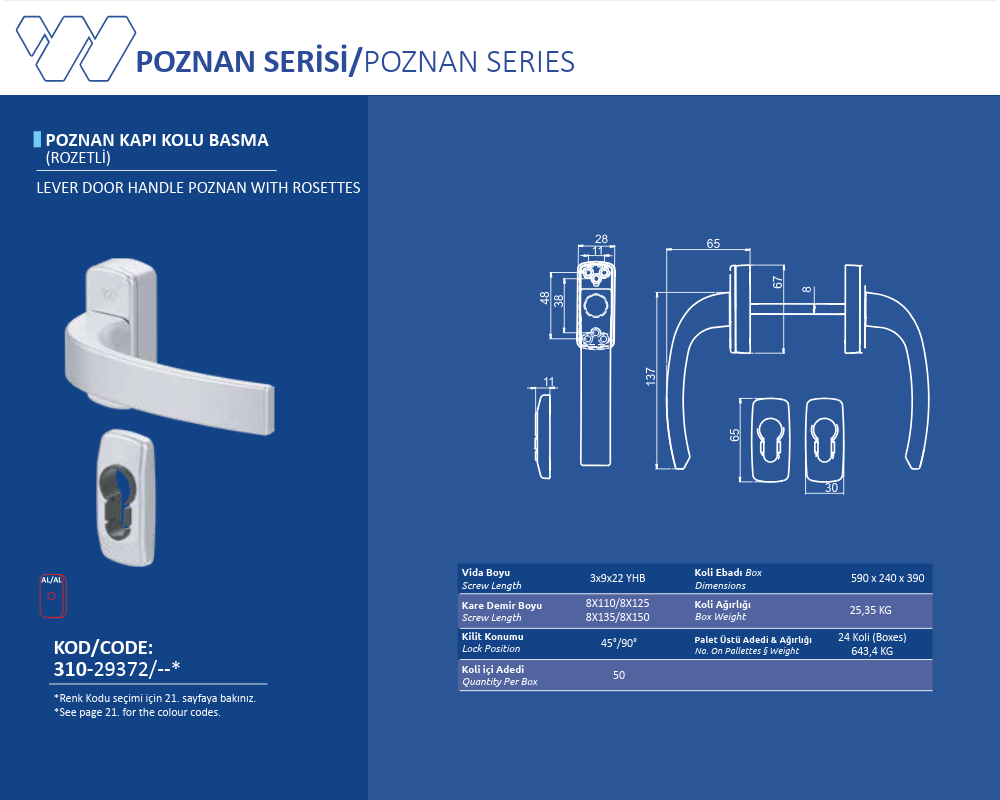 Palet Üstü Adedi & Ağırlığı (No. on Palettes & Weight) 24 Koli (Boxes) 643,4 KG