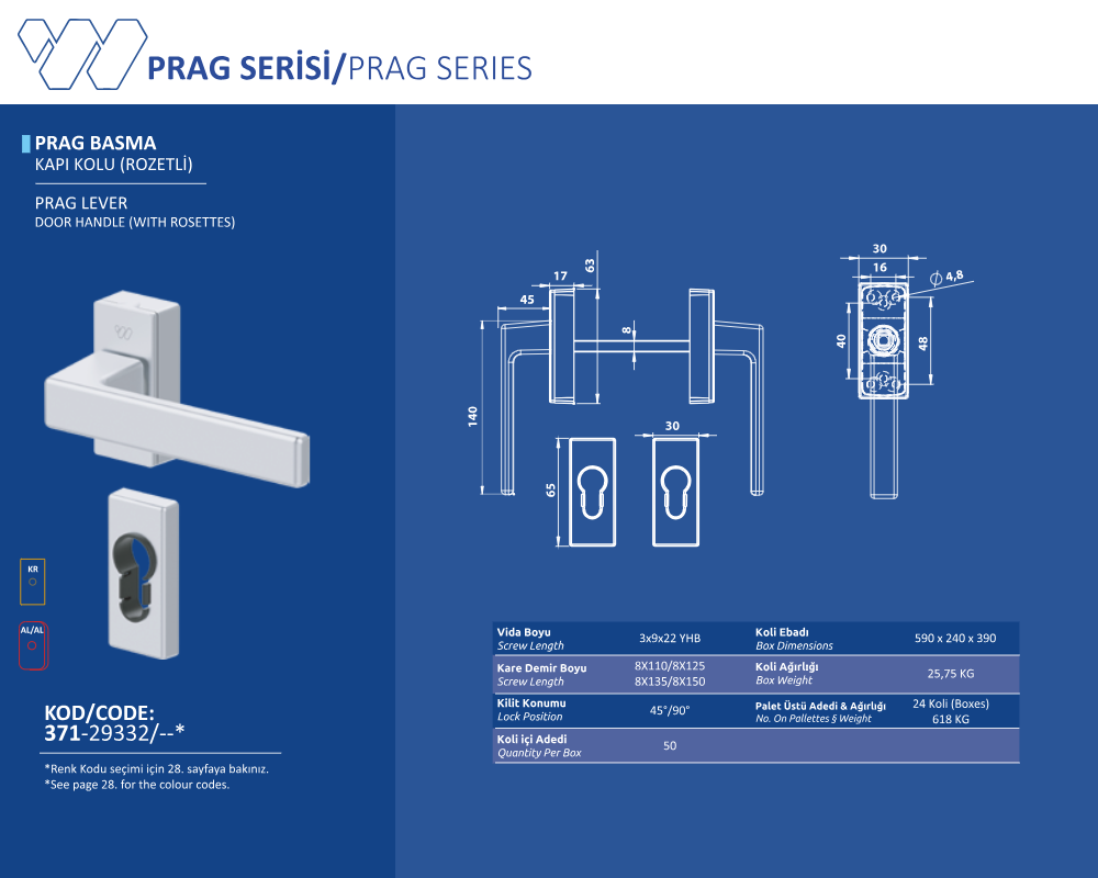 Palet Üstü Adedi & Ağırlığı (No. on Palettes & Weight) 24 Koli (Boxes) 618 KG