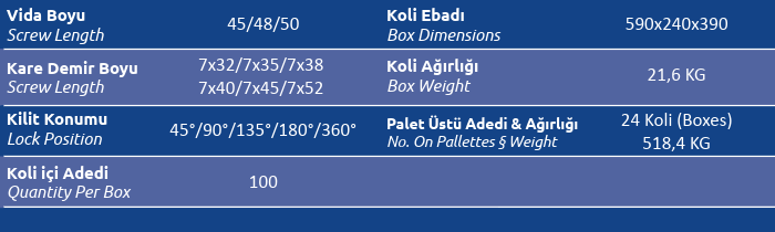 Kare Demir Boyu (Screw Length) 7x32 / 7x35 / 7x38 / 7x40 / 7x45 / 7x52