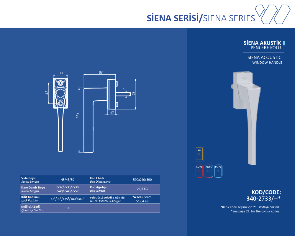 Palet Üstü Adedi & Ağırlığı (No. on Palettes & Weight) 24 Koli (Boxes) 518,4 KG