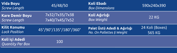 Kilit Konumu (Lock Position) 45° / 90° / 135° / 180°/ 360°