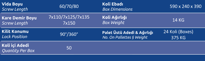 Kare Demir Boyu (Screw Length) 7x110 / 7x125/7x135/7x150