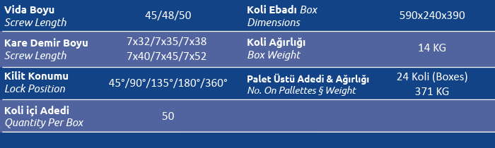 Kare Demir Boyu (Screw Length) 7x32 / 7x35 / 7x38 / 7x40 / 7x45 / 7x52